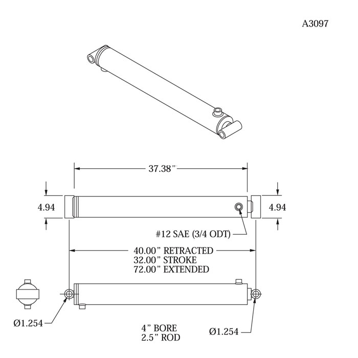 သတ်မှတ်ချက်များ- ငြင်းဆန်ထားသော ထရပ်ကားအတွက် 4" x 2.5" x 32" Bypass Fits ဖြင့် ဟိုက်ဒရောလစ်ဆလင်ဒါကို ရှောင်ကွင်းပါ။